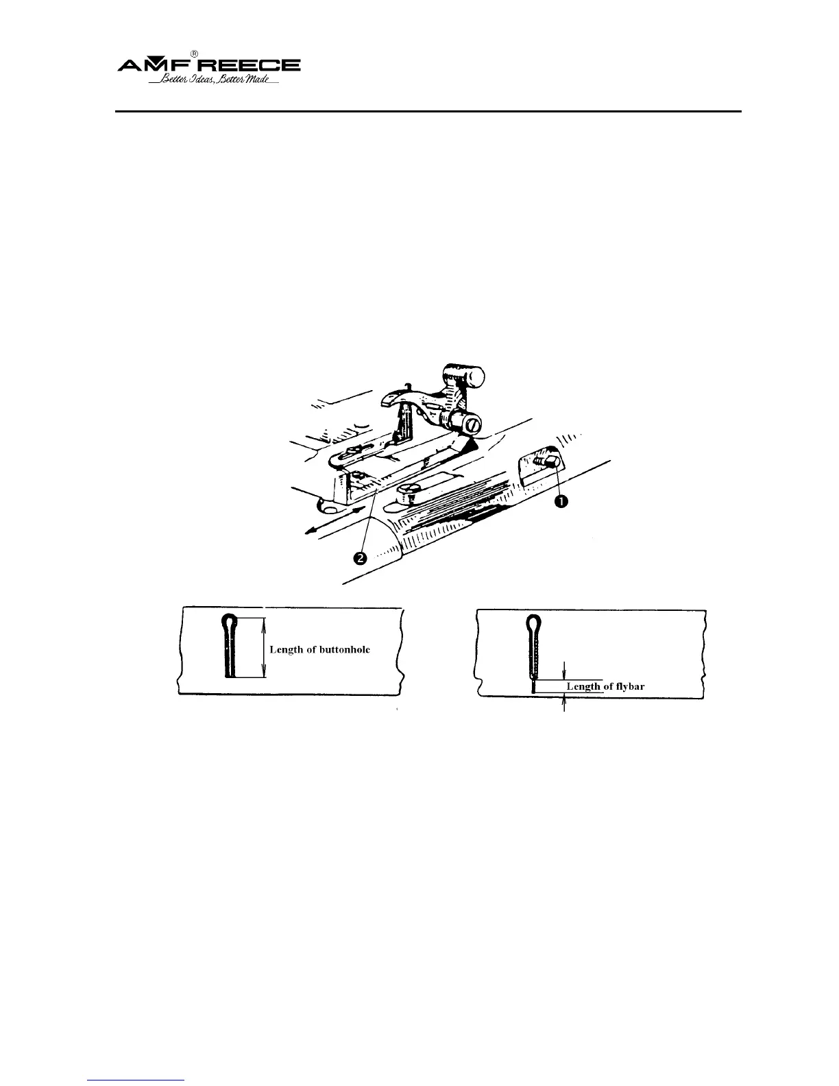 Loosen the set screw n and pull gauge o forward for longer buttonhole. Push lever to the rear