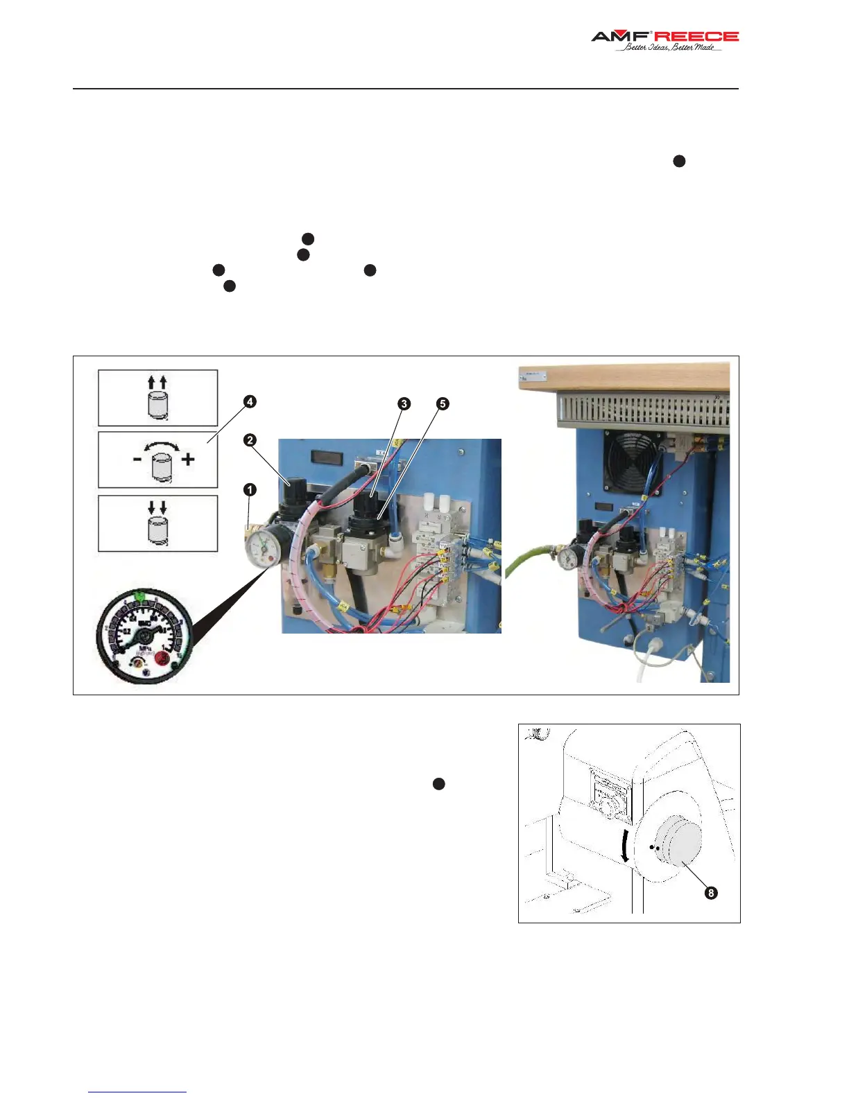 5.2. After air connection check, set the air pressure on the dial of the regulator. It should be in the range 0.45-0.6