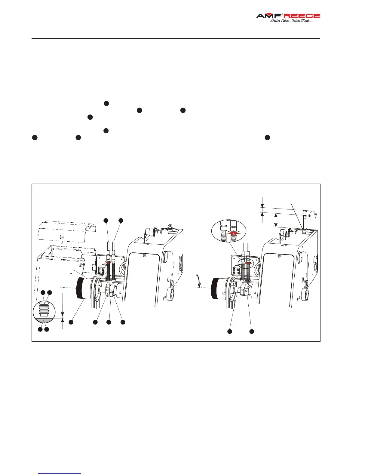 Checking after adjustment: When the machine stops, the right looper has to be turned to the left.