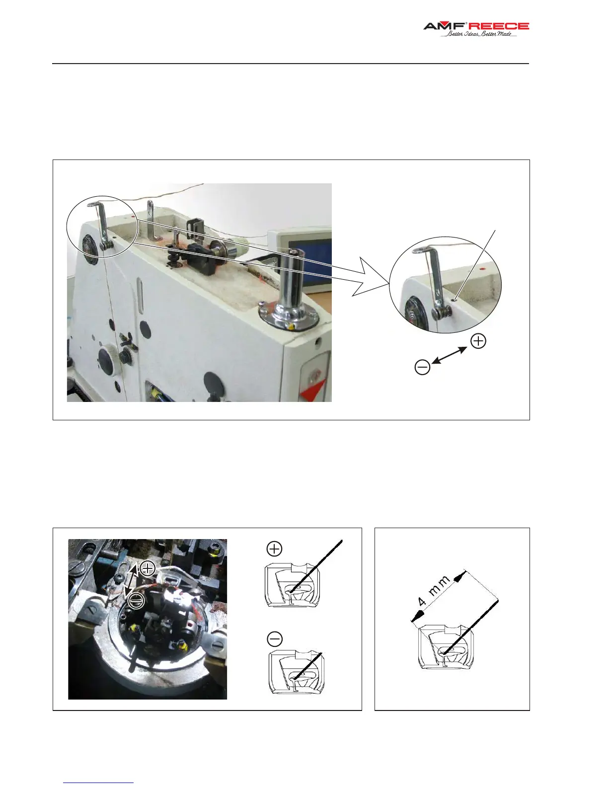 By moving the guide in direction to the machine operator, the gimp length is reduced after the trim and moving the