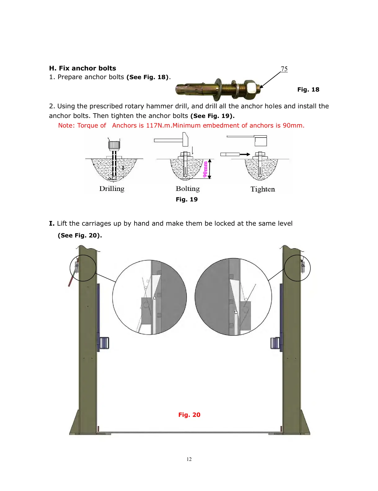 anchor bolts. Then tighten the anchor bolts (See Fig. 19).