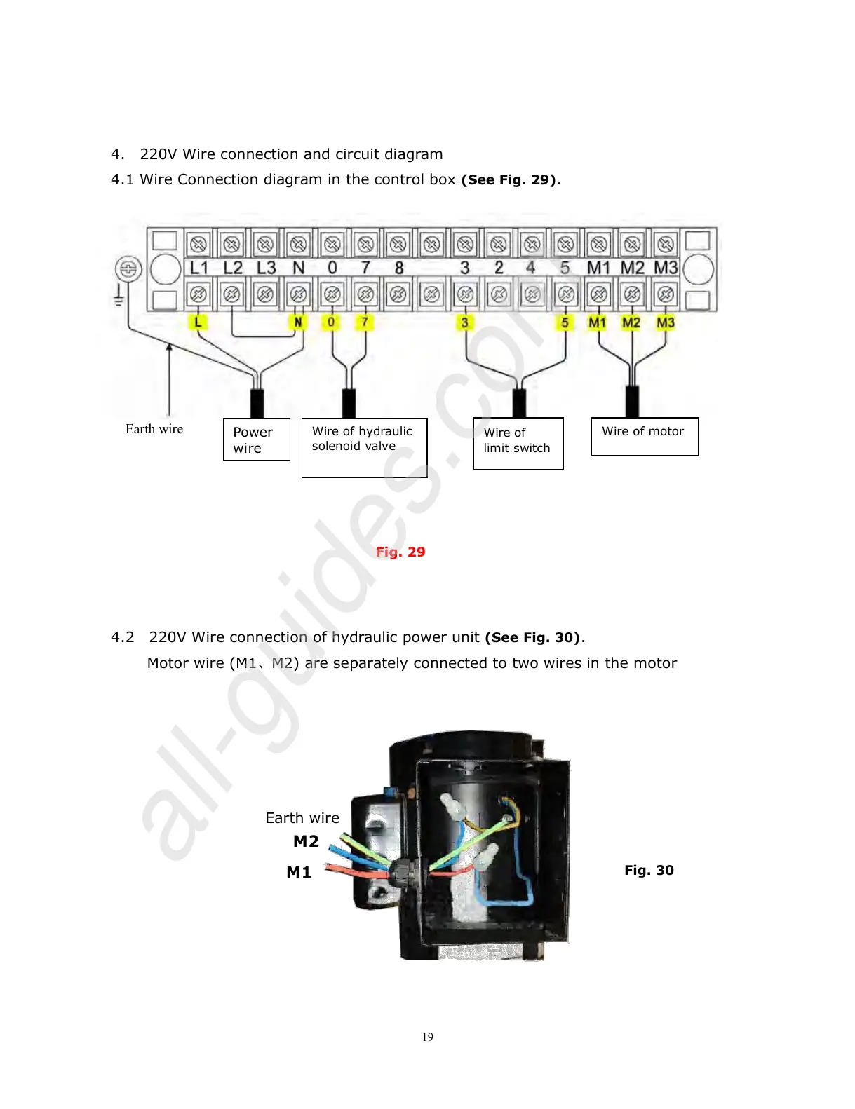4.2 220V Wire connection of hydraulic power unit (See Fig. 30).