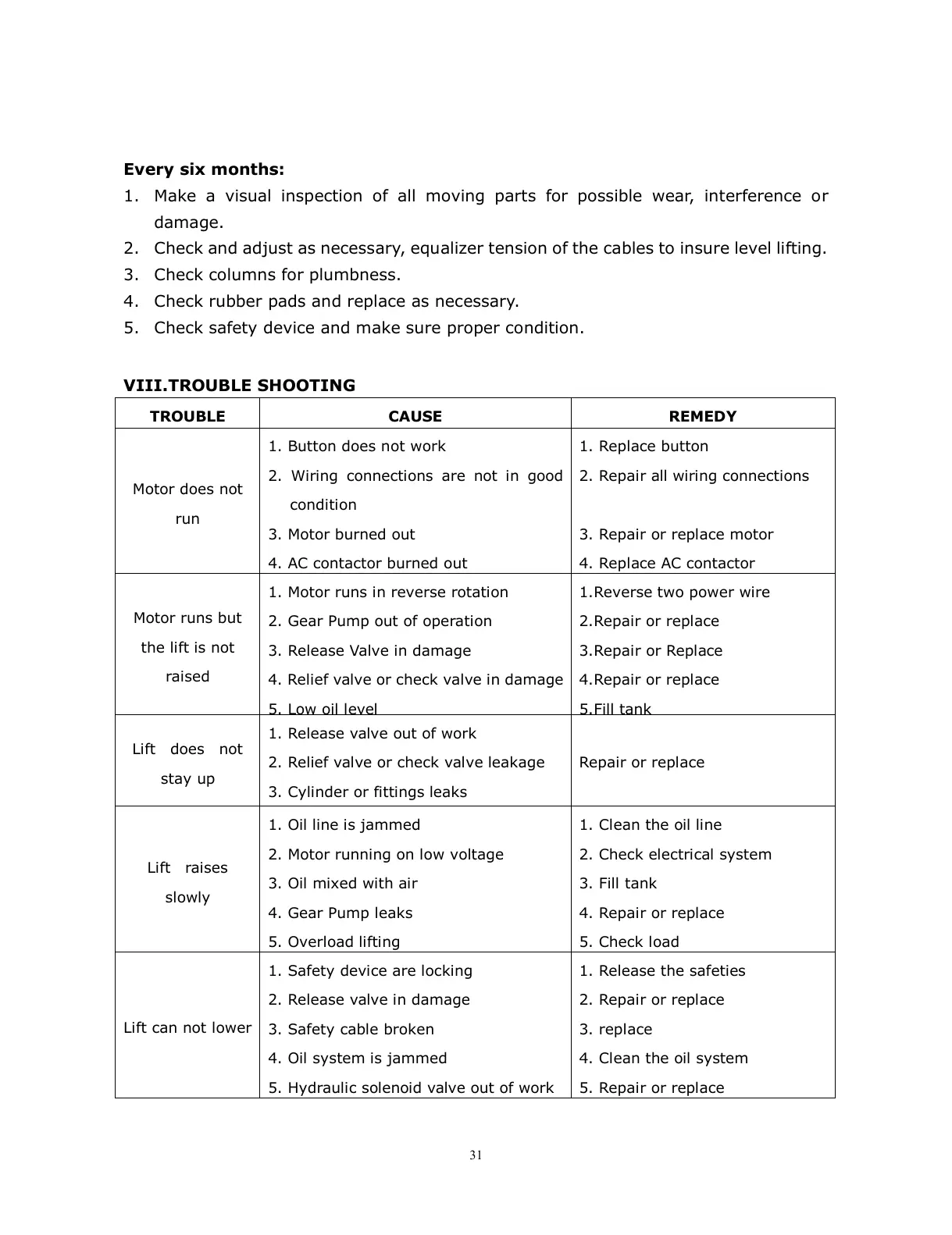 VIII.TROUBLE SHOOTING