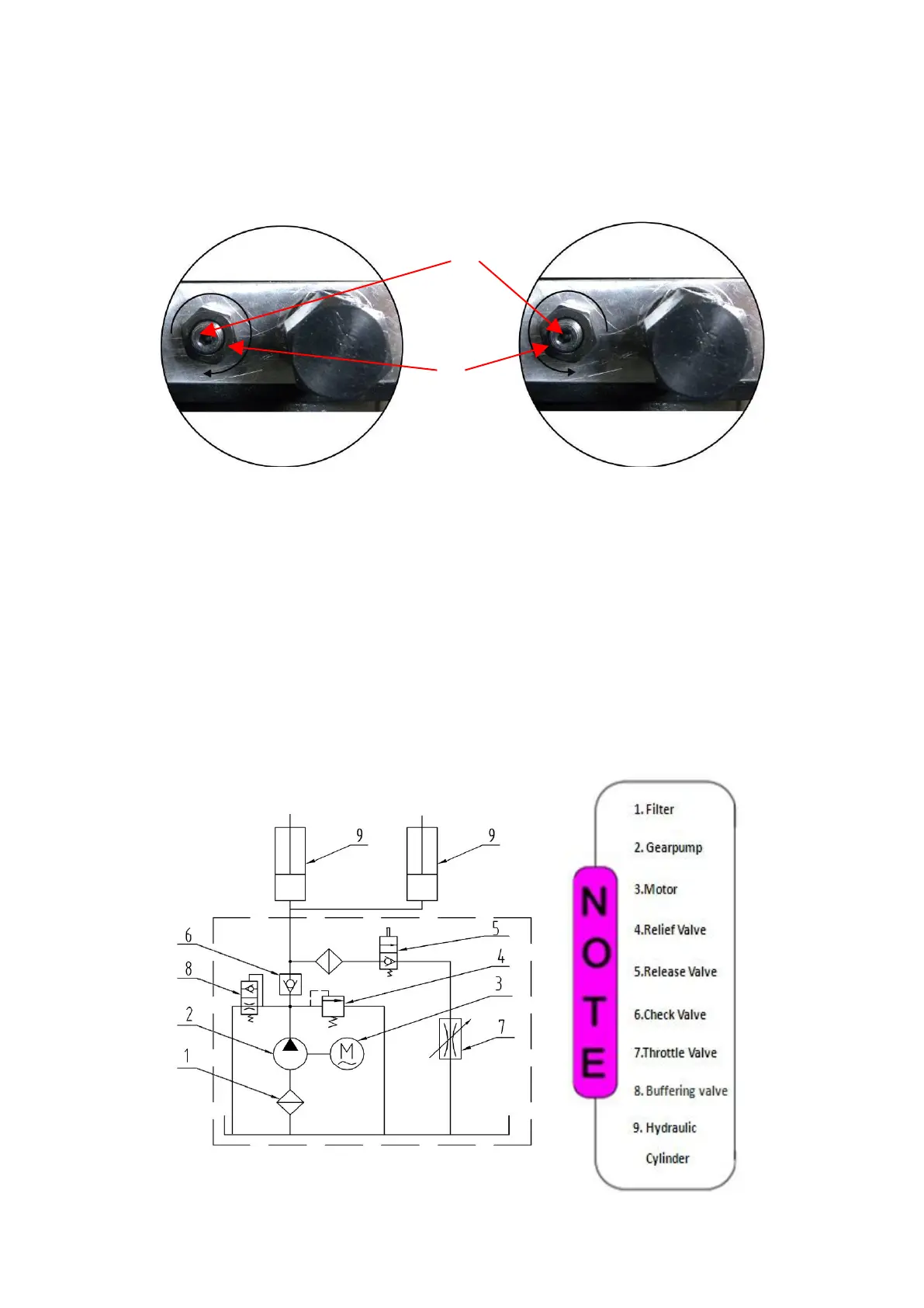 After finishing the above adjustment, test running the lift with load. Run the lift in low