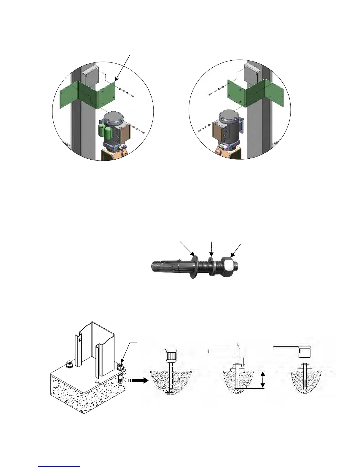 the anchor bolts. Tap the anchor bolts into the anchor hole with a hammer and tighten the