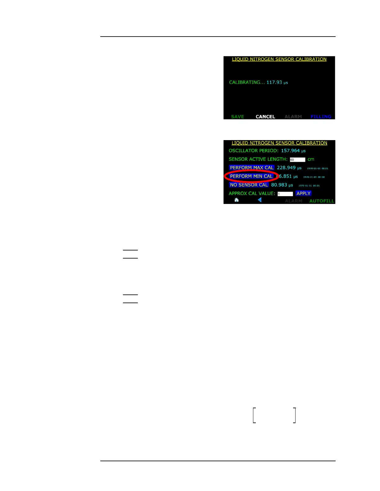 PERFORM MIN CAL button.