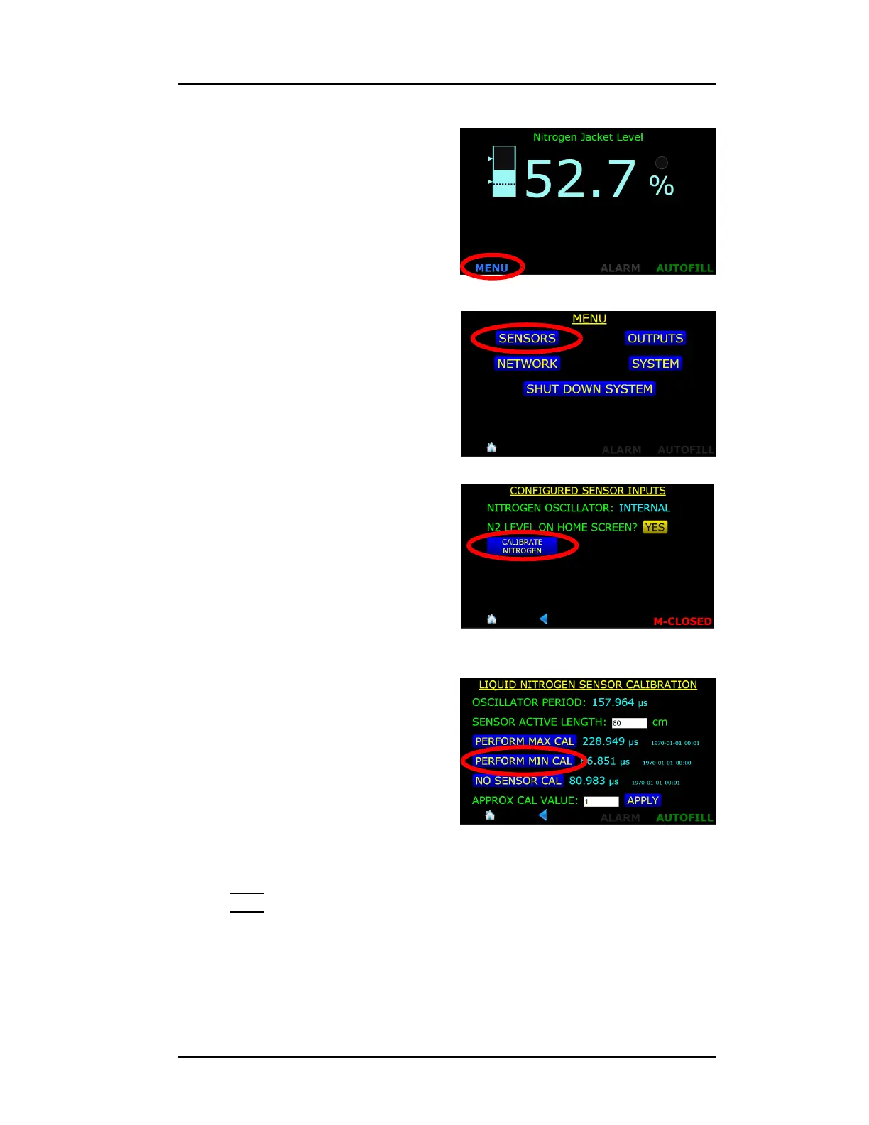 5. Press the PERFORM MIN CAL