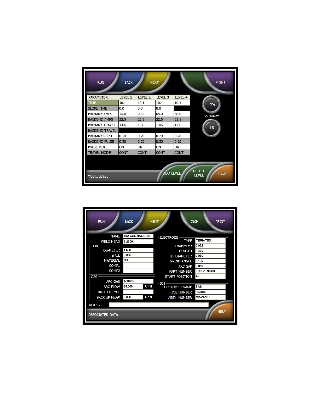 4. Select each field to be modified and enter the text or value via the on-screen alpha-