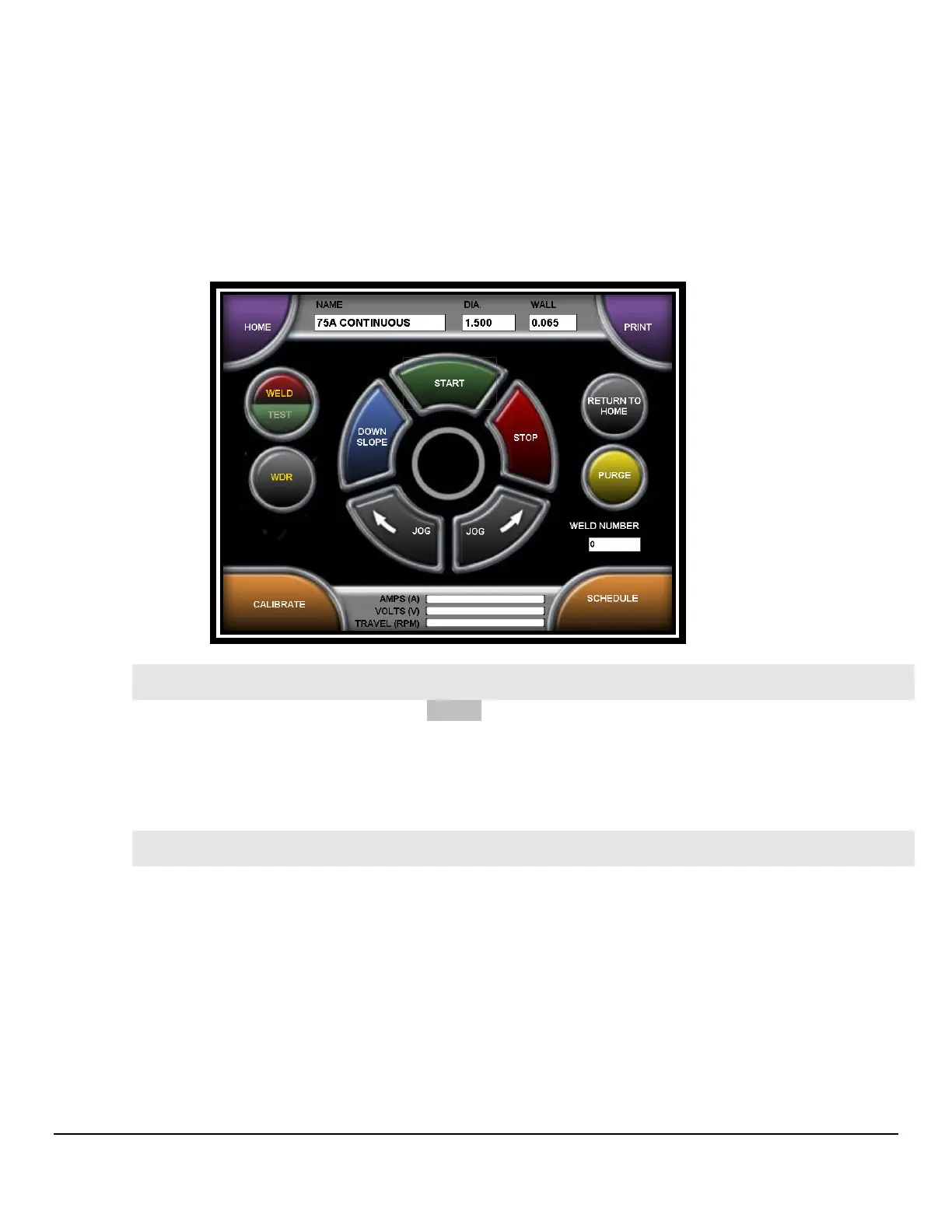 The font on the WDR button turns red while the weld data is being recorded.