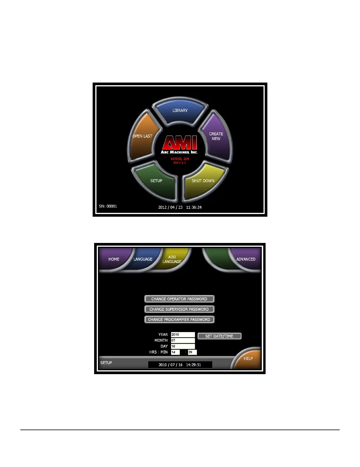 3. From the HOME screen press SETUP
