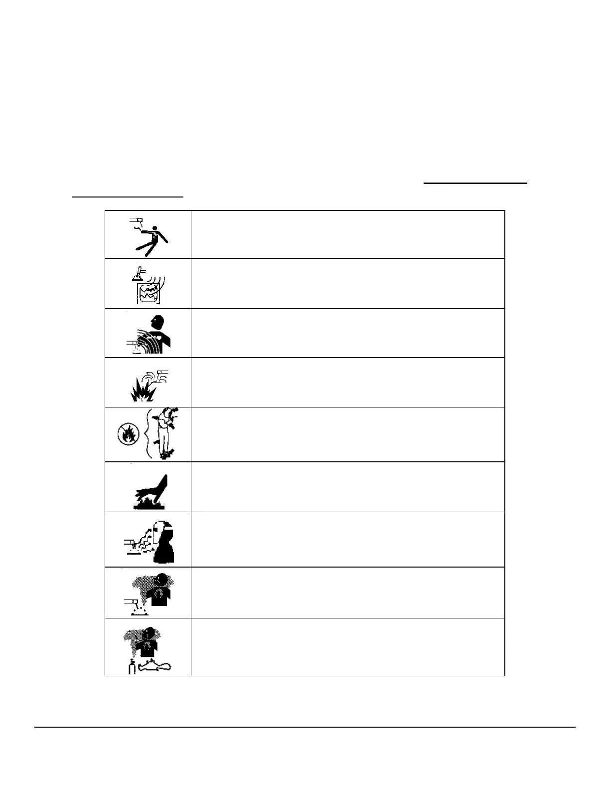 The table below contains caution and warning labels for the operation of this equipment. Before
