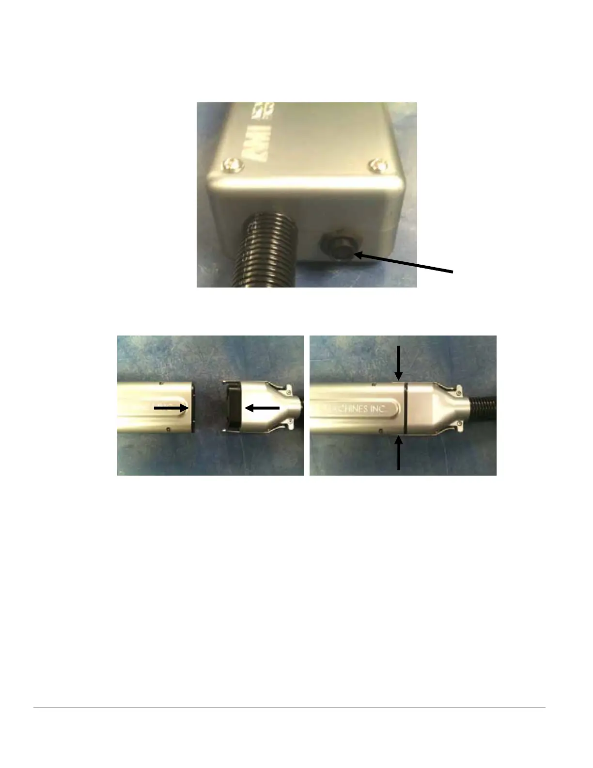 Push Controller cable into weldhead (left) until latches “click” closed (right).