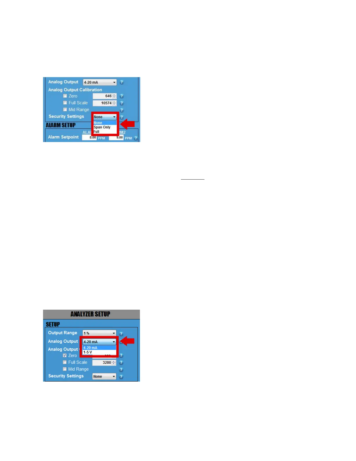While in this security setting, once any alarm or output range