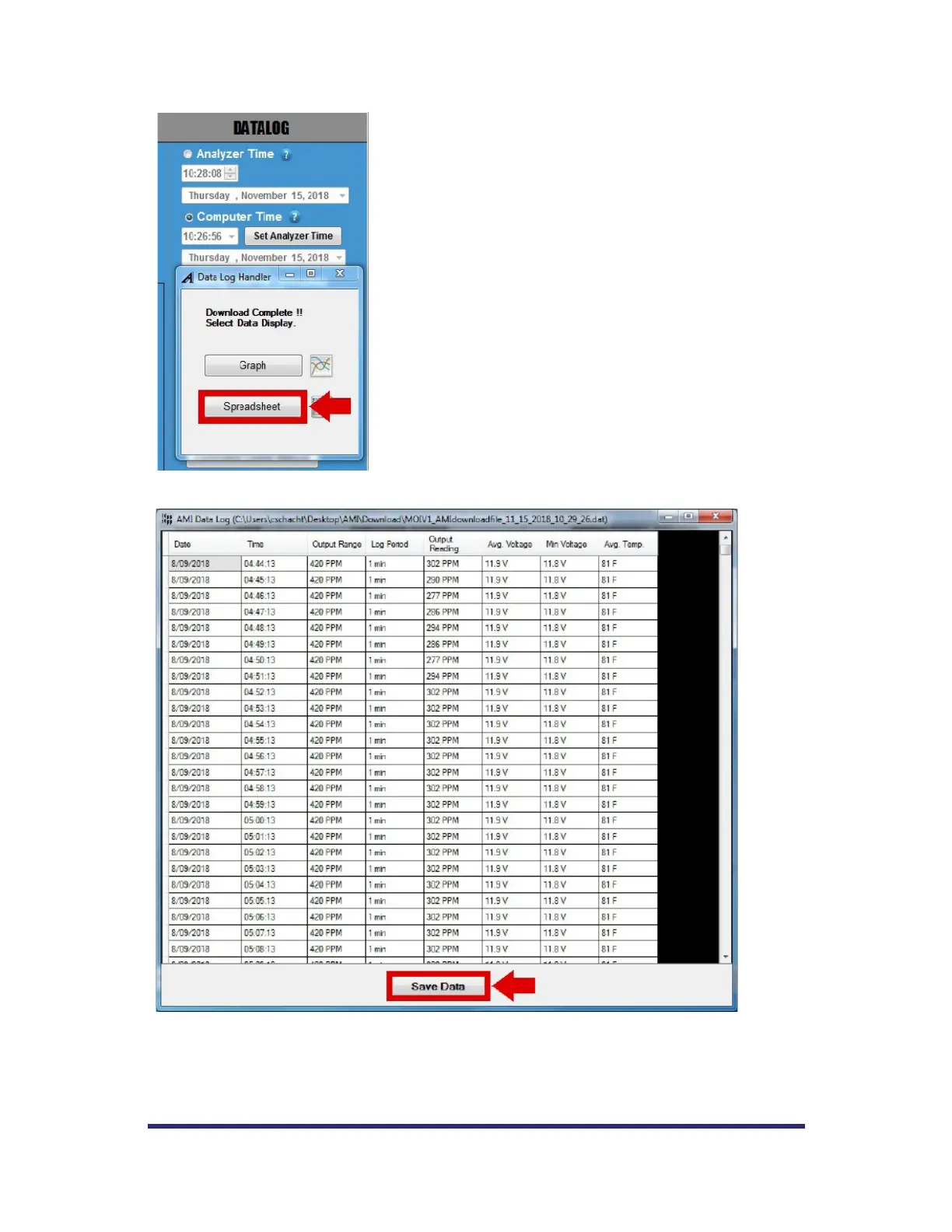 SPREADSHEET Button. on the DATALOG HANDLER Window.