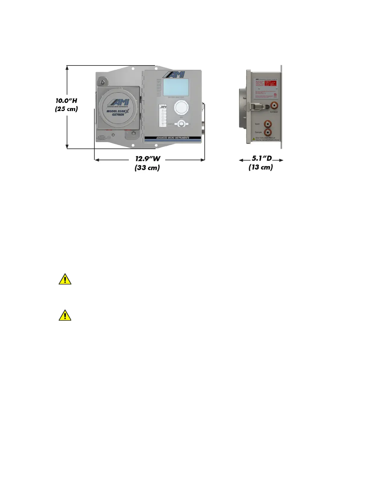 • The Analyzer can be mounted either indoors or outdoors, where the ambient temperature