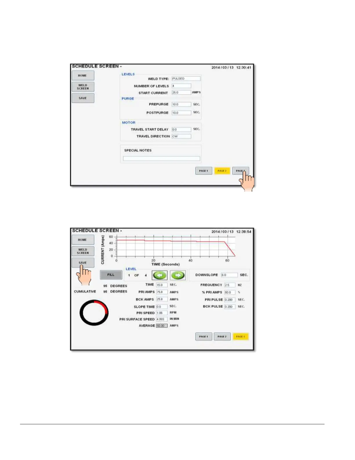 4. Press Page 3. Select and enter all required WELDING parameters for all 4 levels.