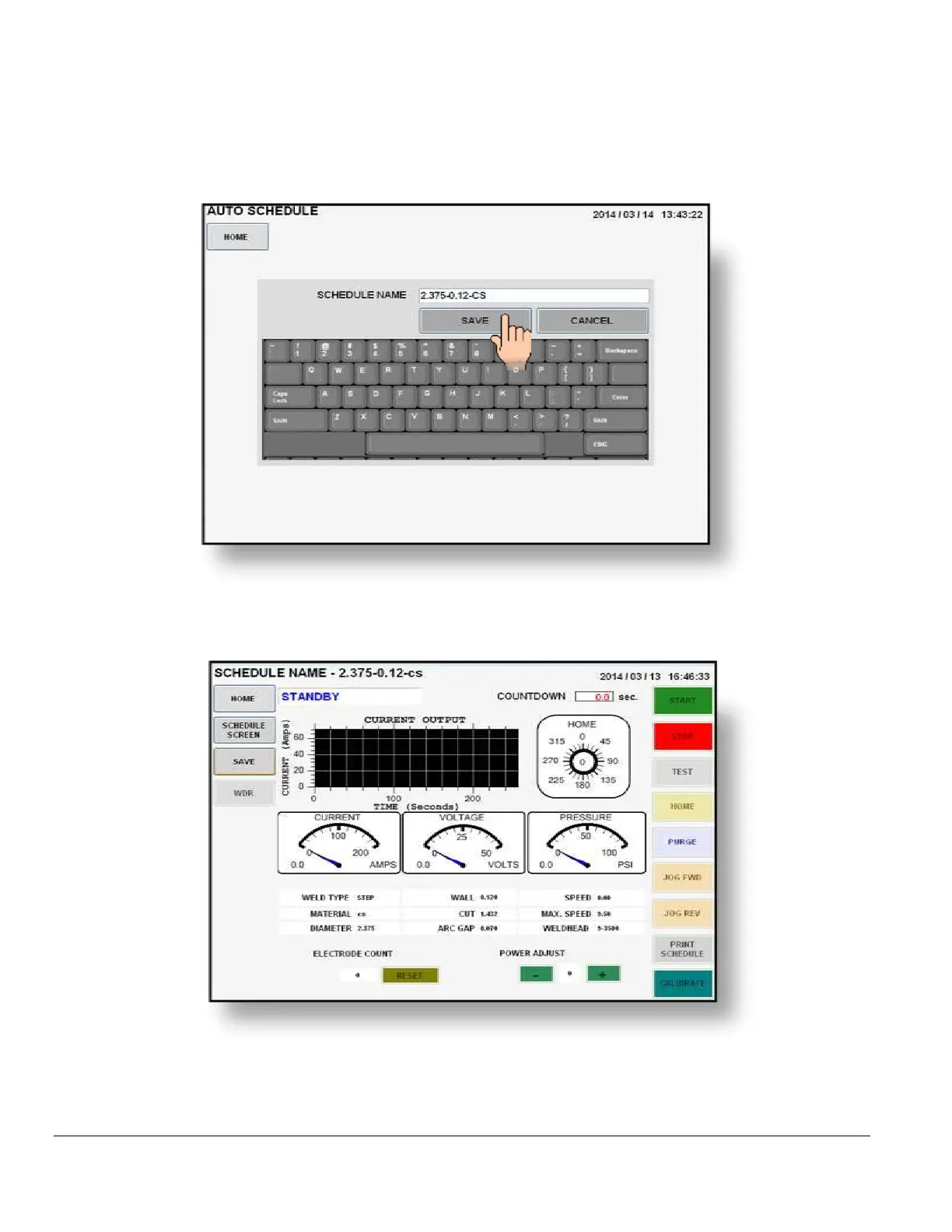 selected and the WELD SCREEN will be displayed with the schedule name on top.