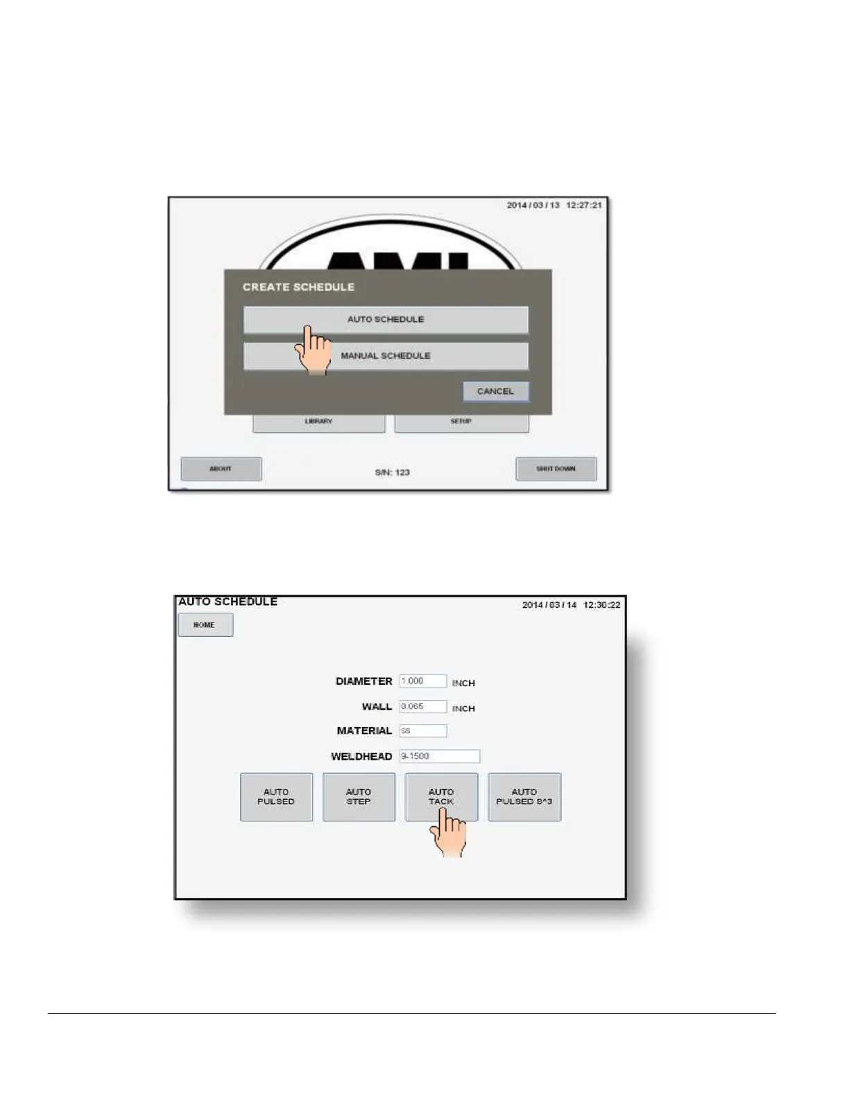 2. The AUTO SCHEDULE screen will be displayed. Select and enter all required O.D., WALL,