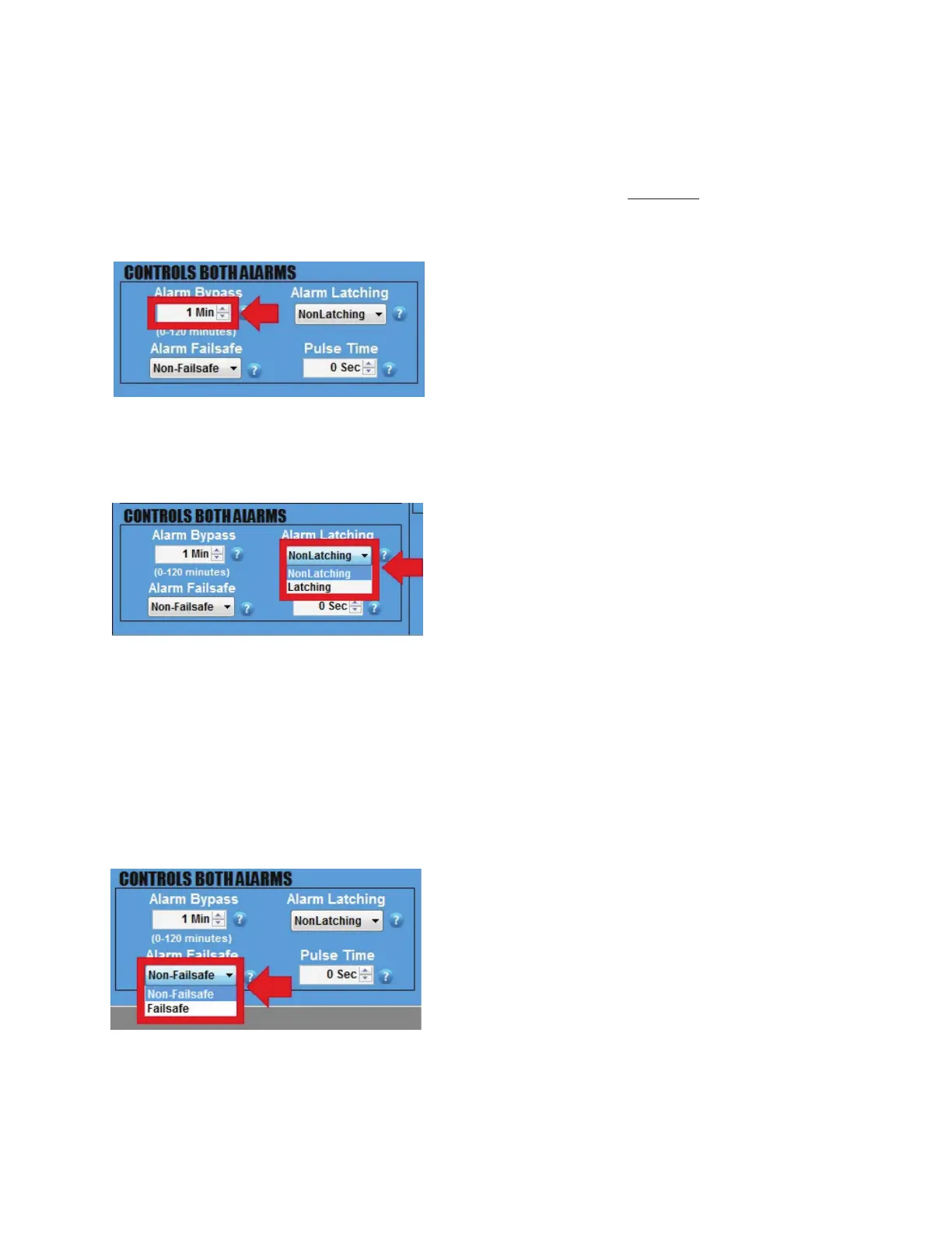 - If set to NONFAILSAFE, the ALARMS will not