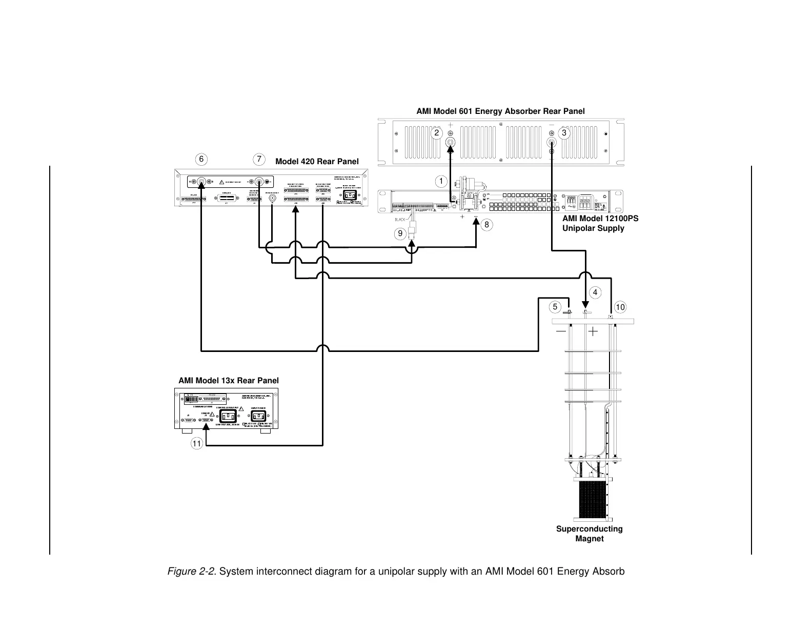 Figure 2-2. System interconnect diagram for a unipolar supply with an AMI Model 601 Energy Absorber.
