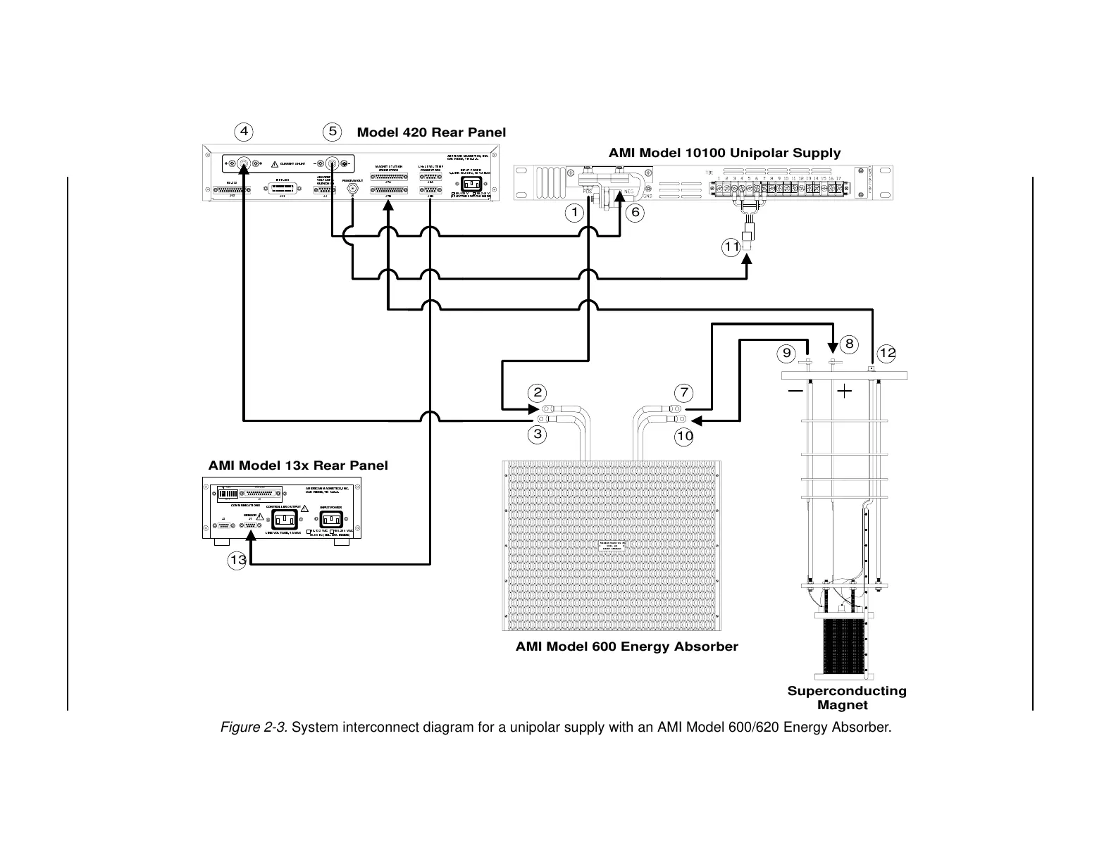 Figure 2-3. System interconnect diagram for a unipolar supply with an AMI Model 600/620 Energy Absorber.