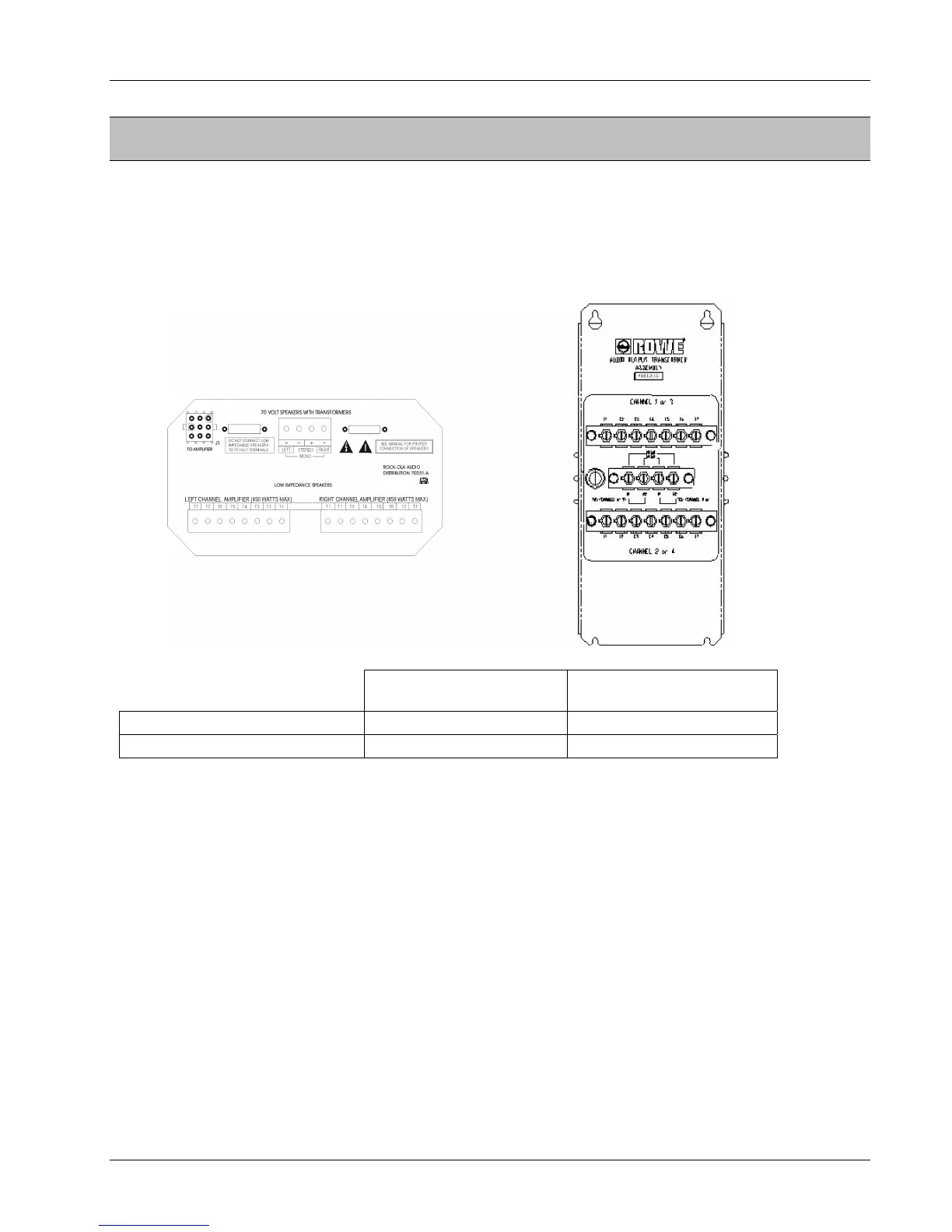 70 Volt Speaker Taps Left + –, Right + – Ch1 A1, A2, Ch2 A1, A2