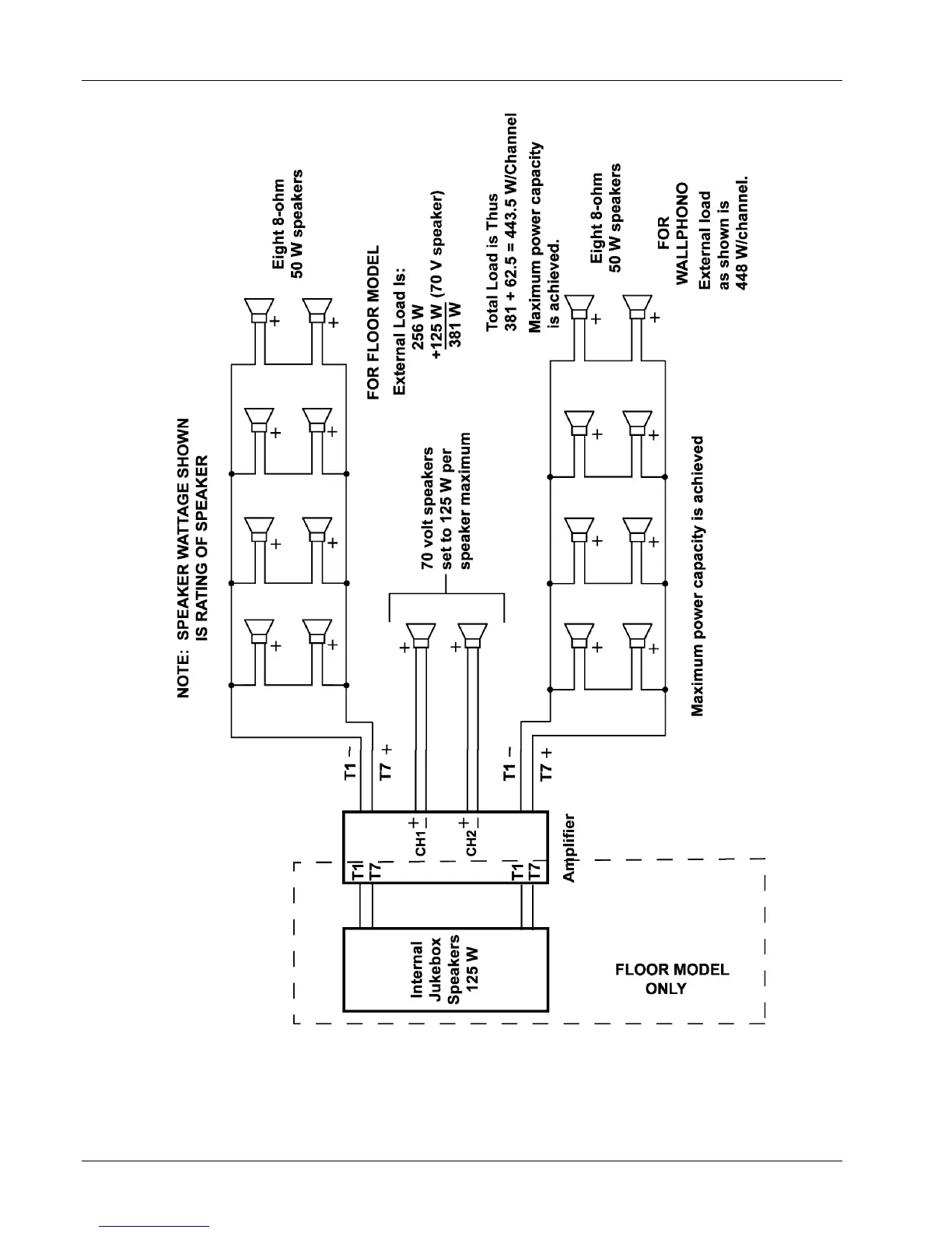 Figure 3–14 – Low Voltage and 70V Speakers with Jukebox Speakers Connected to T1-T7 Rock-Ola