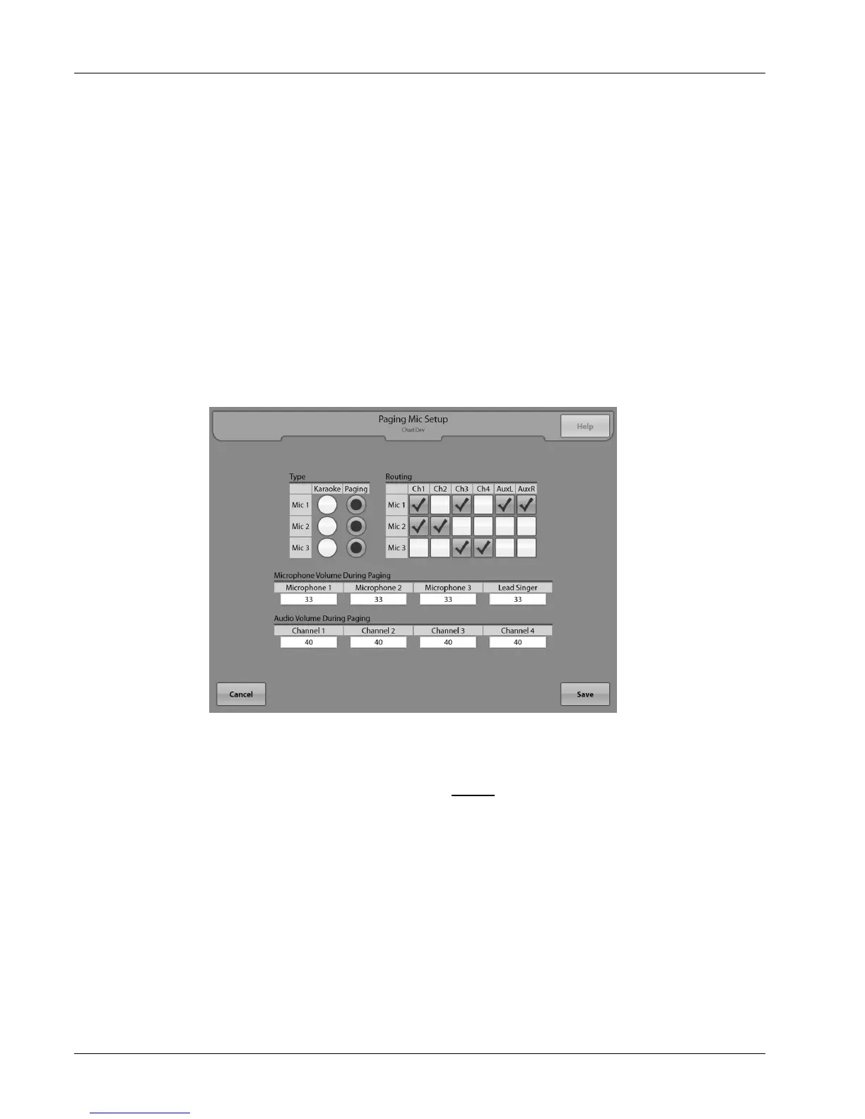 • The Microphone Volume During Paging is factory set to 33 for all microphones and is the