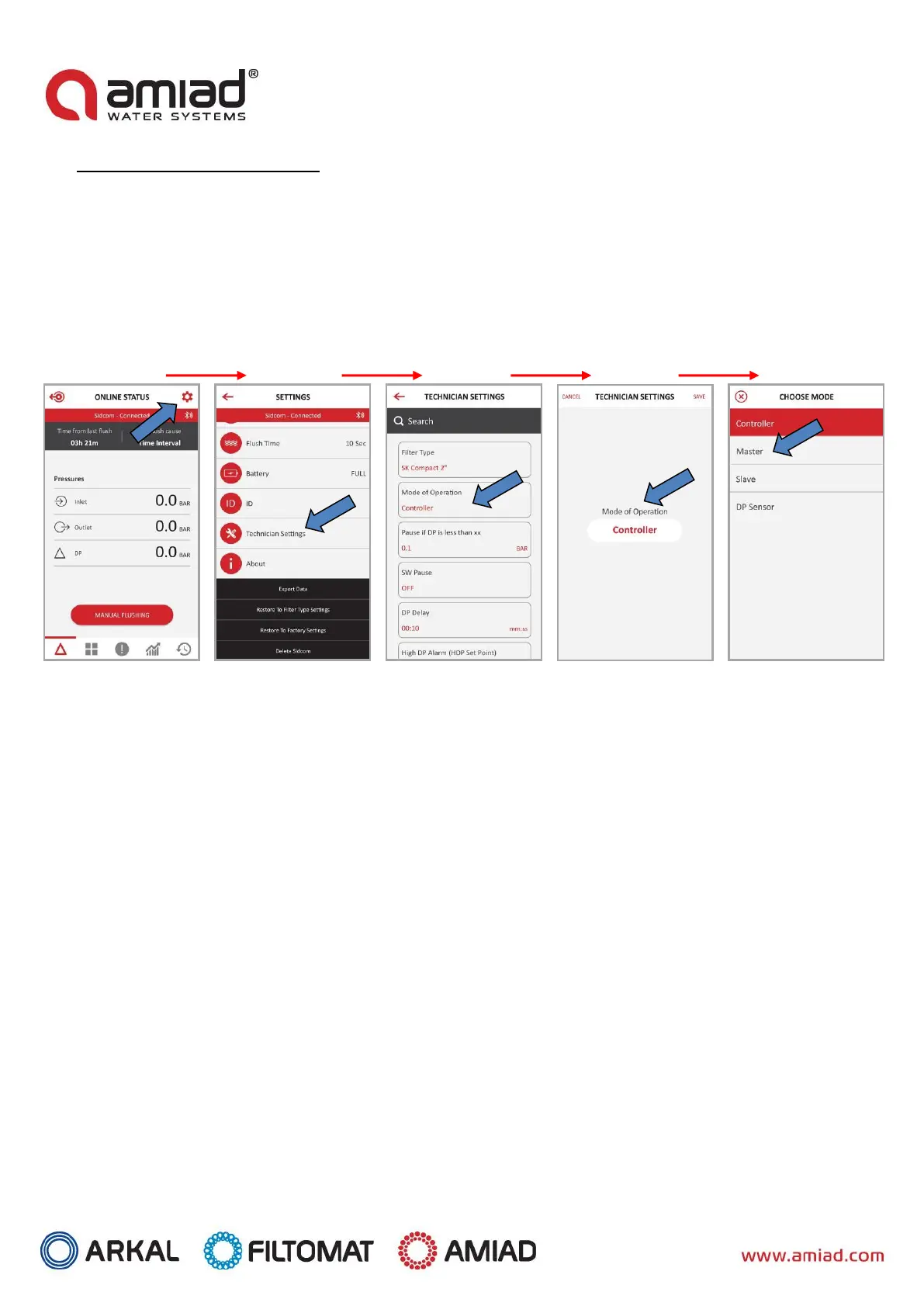 To connect the Adi-P App to the Primary controller, perform the following: