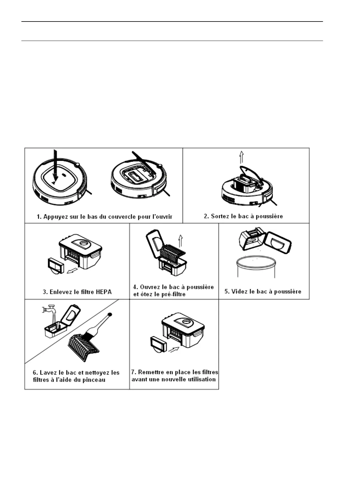 2. Nettoyage du bac à poussière et du filtre