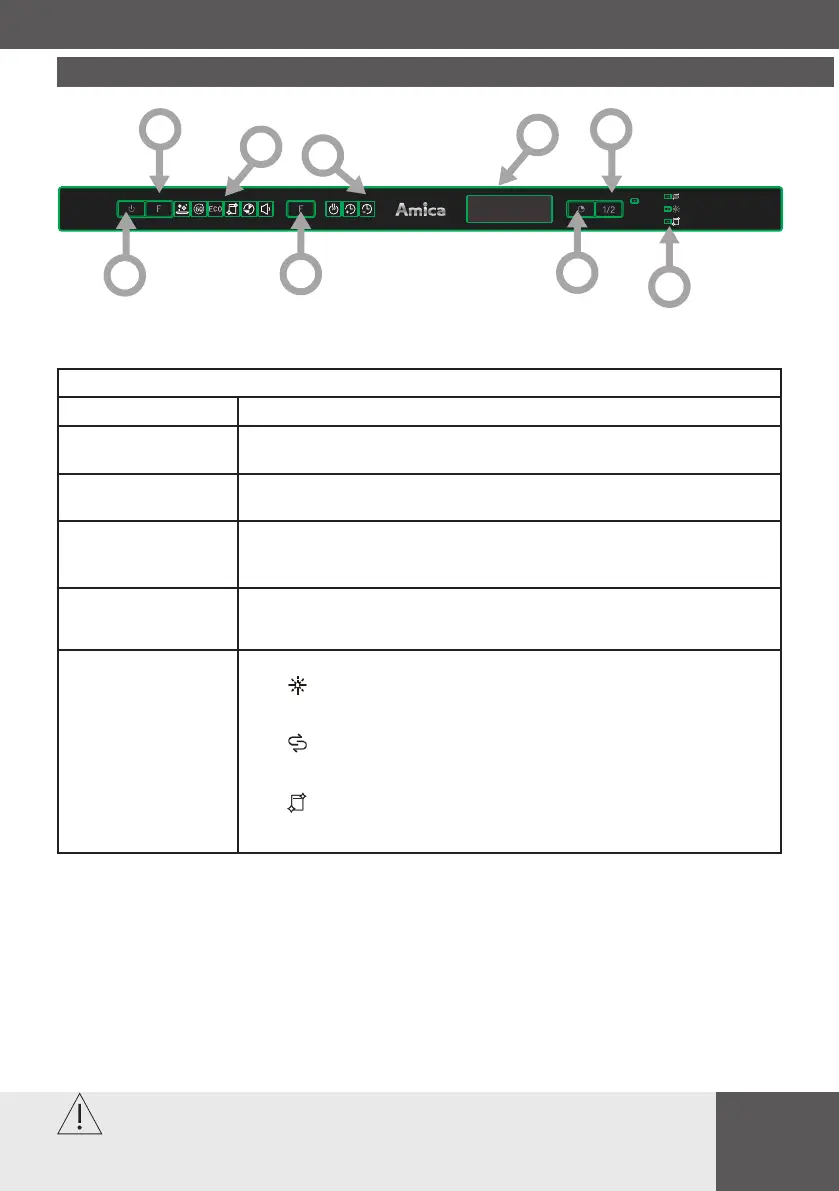 1. Power Press this button to turn on your dishwasher, the screen lights up.
