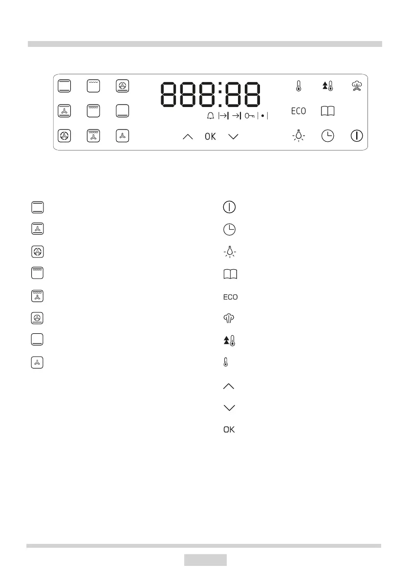 Het bedieningspaneel is uitgerust met een led-display en tiptoetsen (de tiptoetsen zijn verlicht):