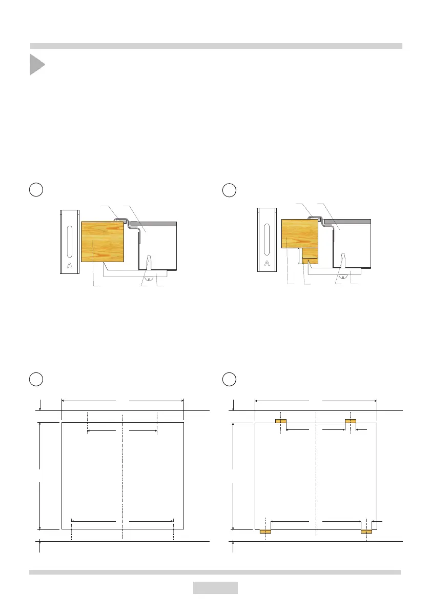 ● Use four “A” brackets for 38 mm thick worktops. Fit the hob into worktop opening as shown