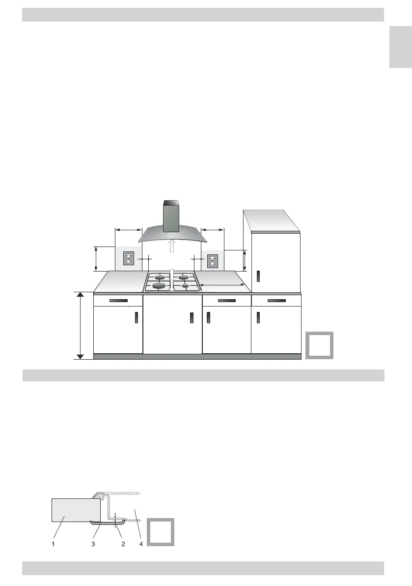 ● Odległość pomiędzy palnikami nawierzchniowymi a odciągiem kominowym powinna wynosić min.