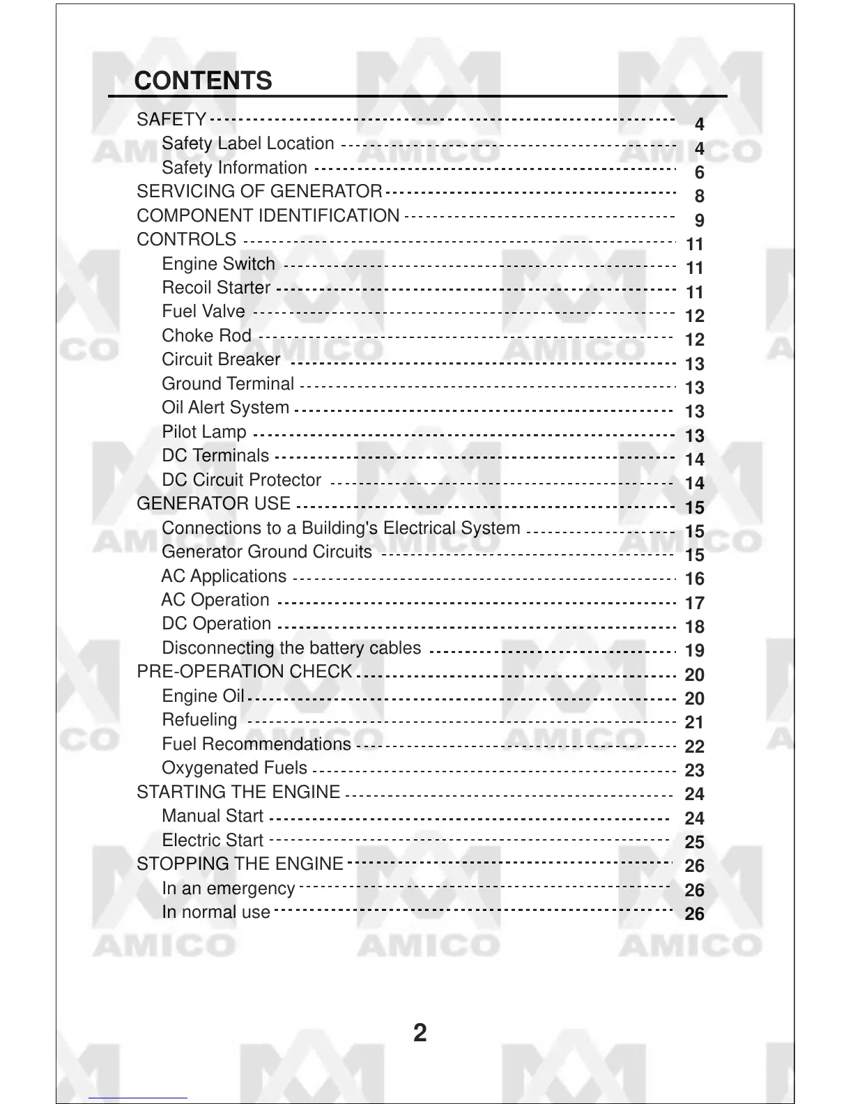 Amico AH7500E - Table of Contents