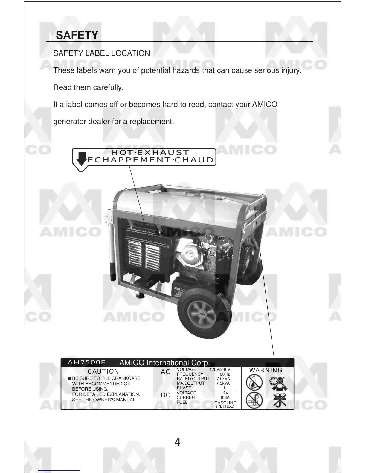 If a label comes off or becomes hard to read, contact your AMICO