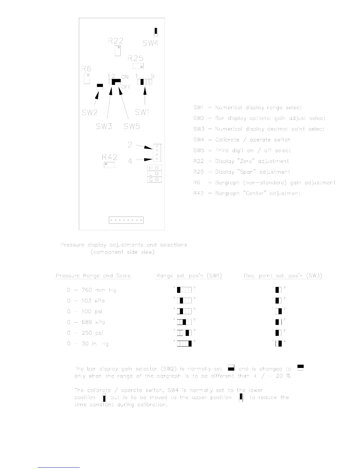 The calibrate / operate switch, SW4 is normally set to the lower
