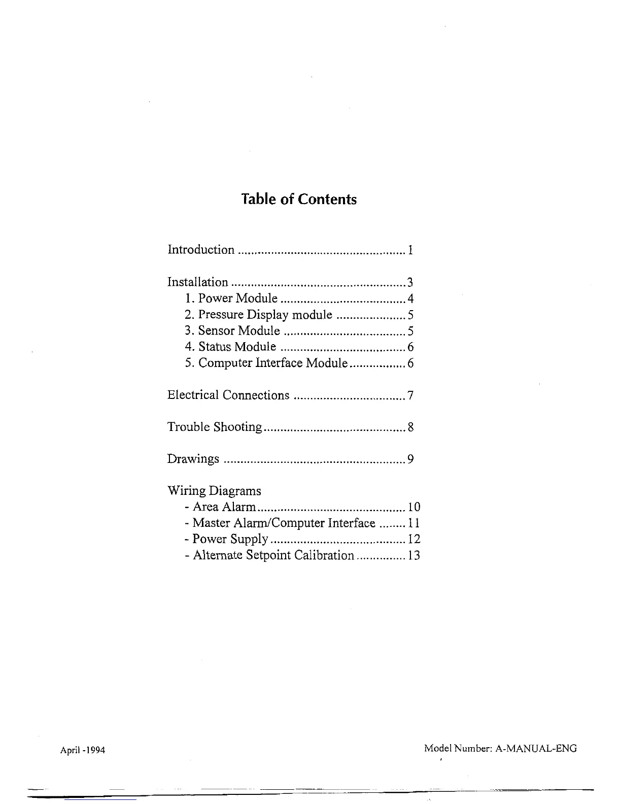 Amico ALERT-1 - Table of Contents