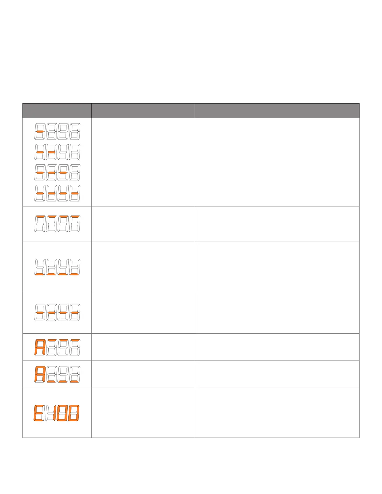 detected and shown on the LCD display. The chart below illustrates the various icons and error codes that can appear on