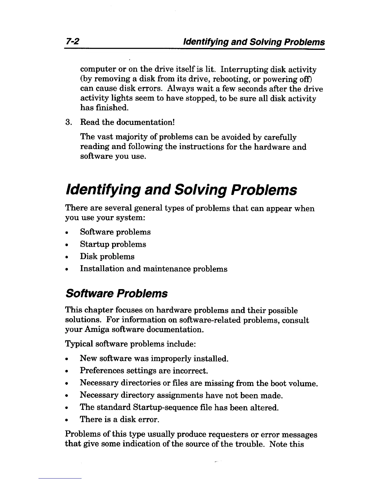 Amiga A4000 - Chapter 7 Help with System Problems; Identifying and Solving Problems; Software Problems