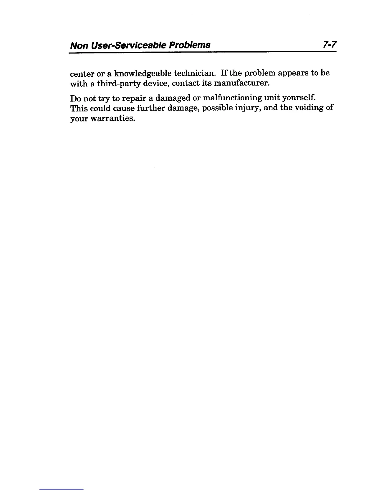 Non User-Serviceable Problems