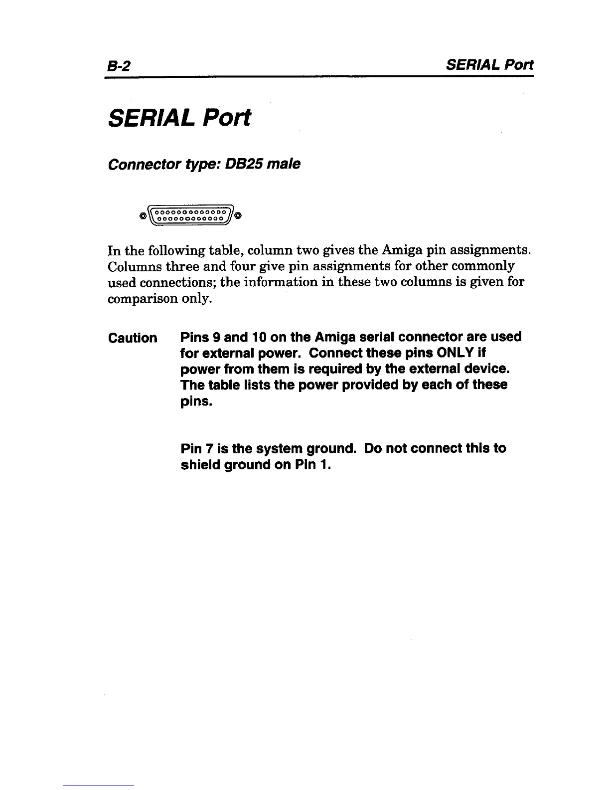 Caution Pins 9 and 10 on the Amiga serial connector are used