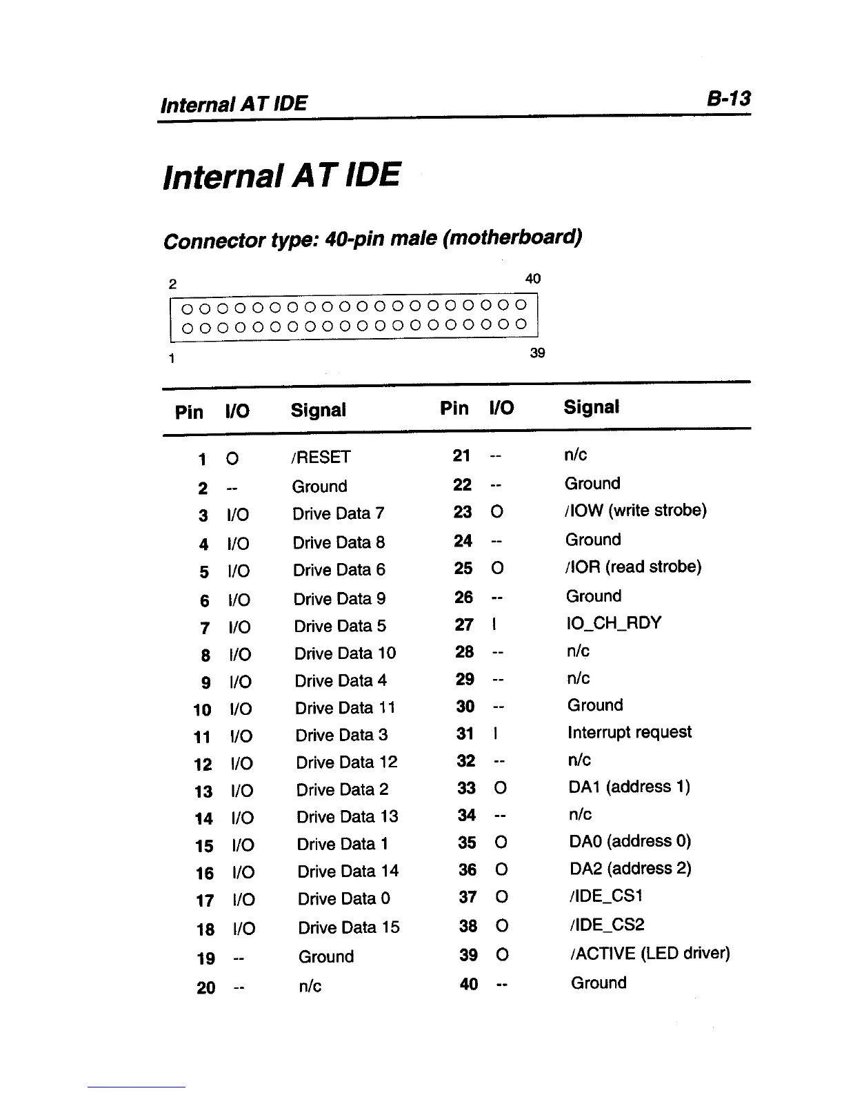 Connector type: 40-pin male (motherboard)