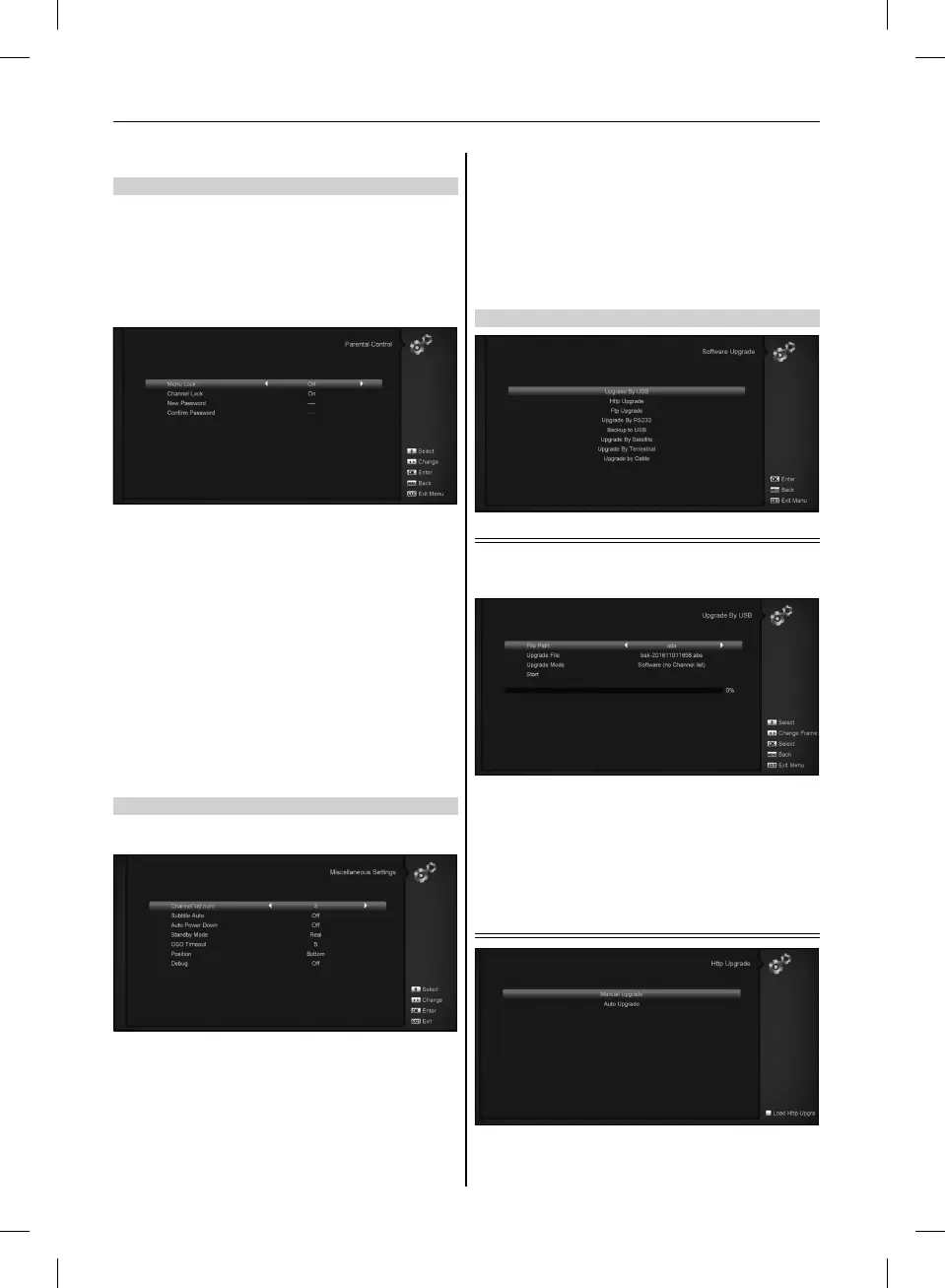 In this menu you can upgrade the software from USB conveni-