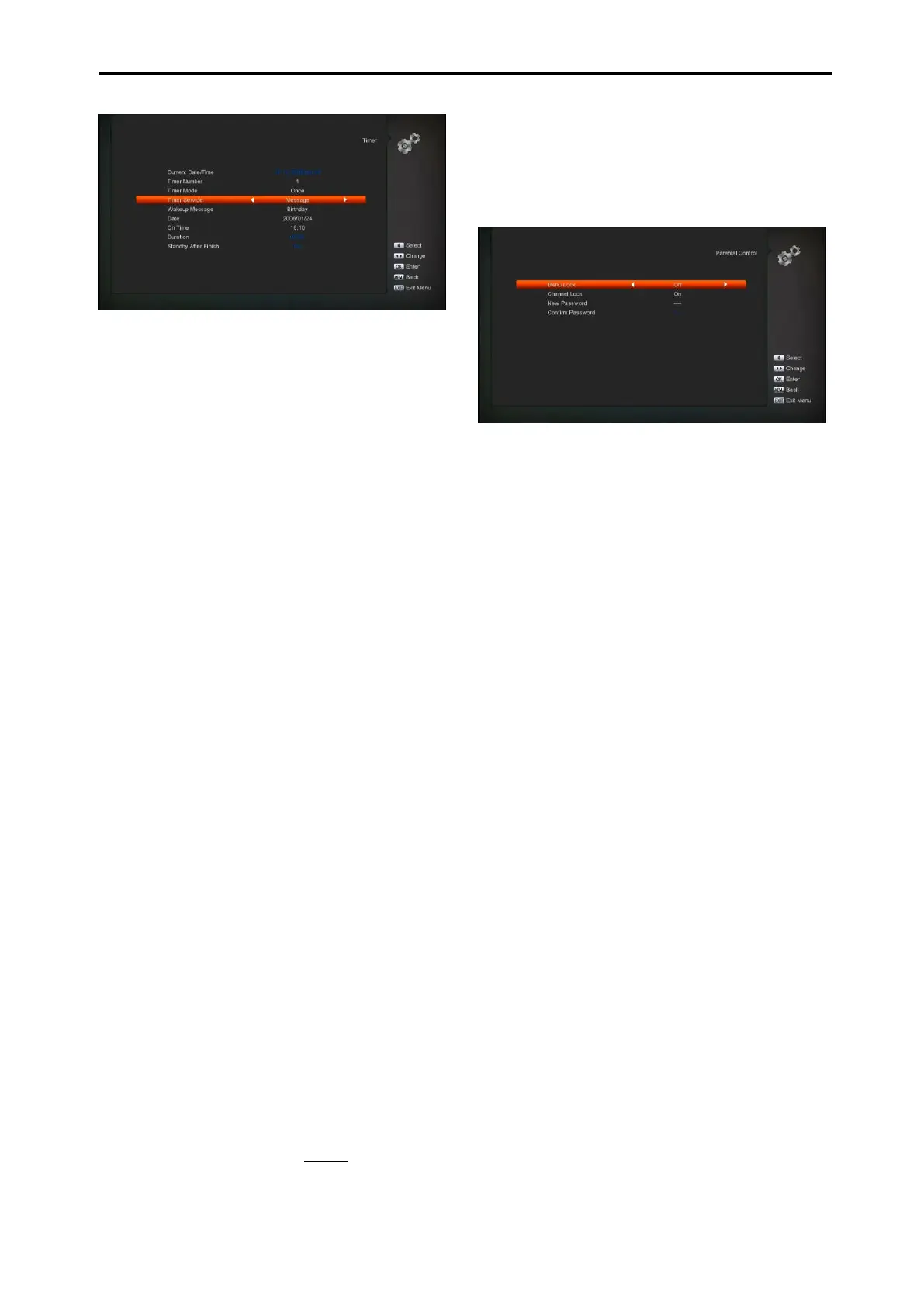 “Parental Lock” menu.