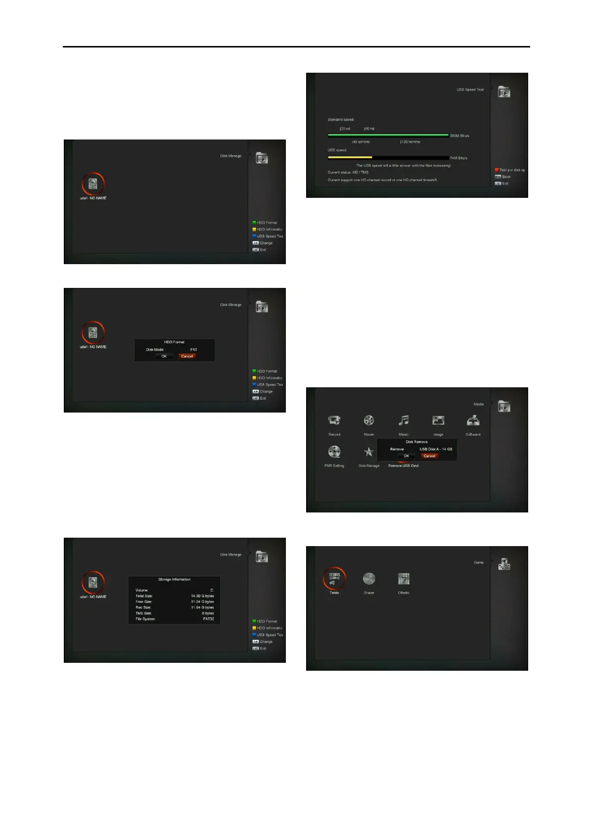 Format,HDD information and USB Speed test.