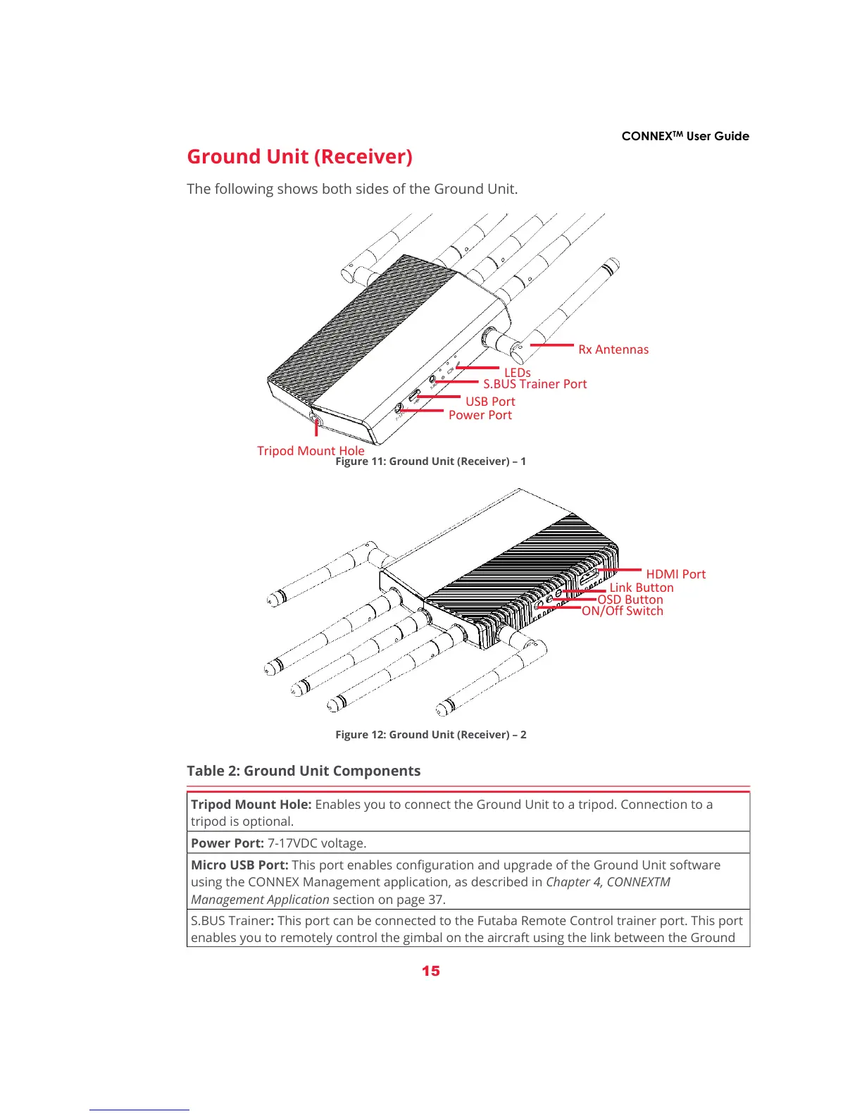 Micro USB Port: This port enables configuration and upgrade of the Ground Unit software