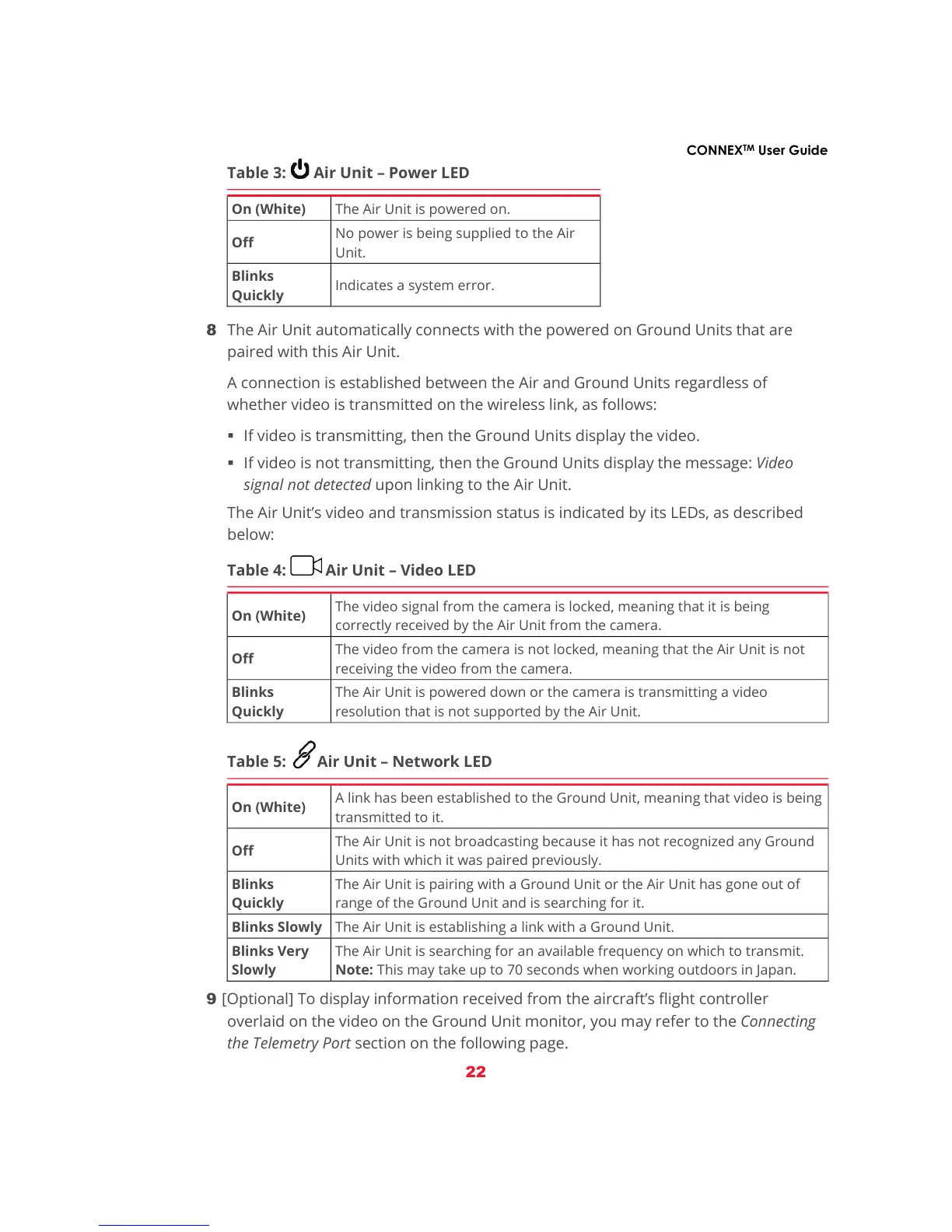 8 The Air Unit automatically connects with the powered on Ground Units that are