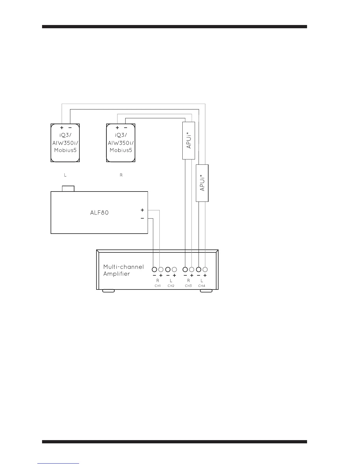 By connecting a single ALF80 to its own amplifier channel, its output (relative to the Amina