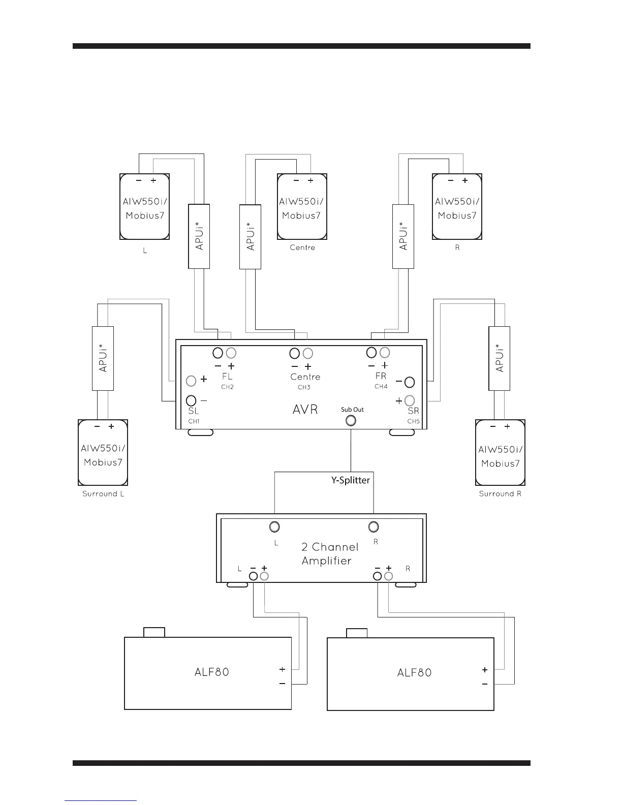 5.1 Cinema system: 5x AIW550i/Mobius7 + 2x ALF80